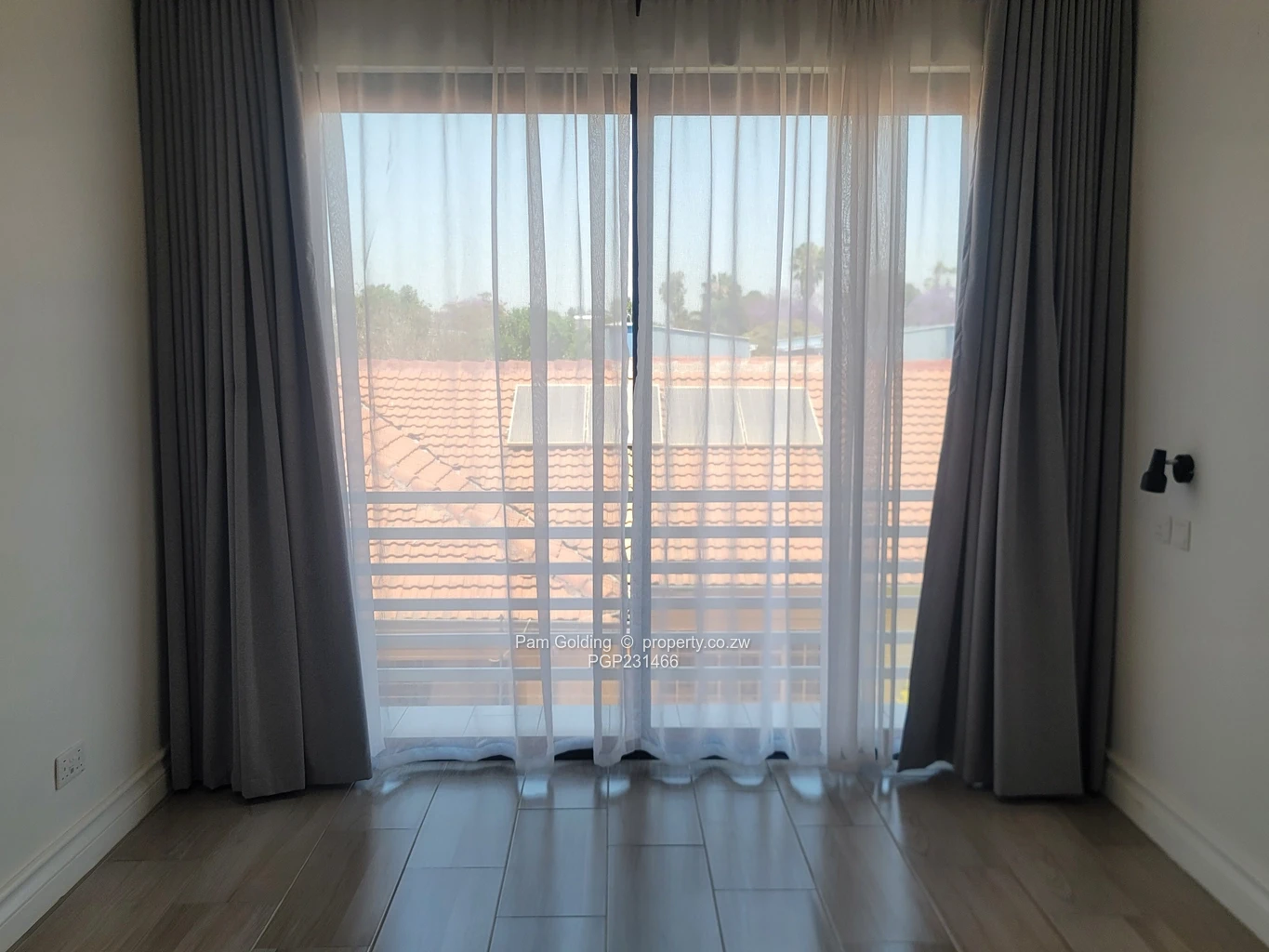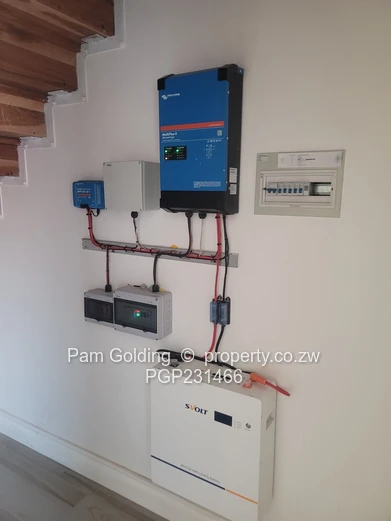 Entrance with guest WC on left, open plan living area with semi fitted kitchen (5 plate gas stove!). Good sized lounge leading to small rear garden. Storage space under stairs and 5kva invertor. Upstairs to 3 bedrooms, 2 with spacious shared bathroom and main with ensuite. State of the art security . Gas geysers.
