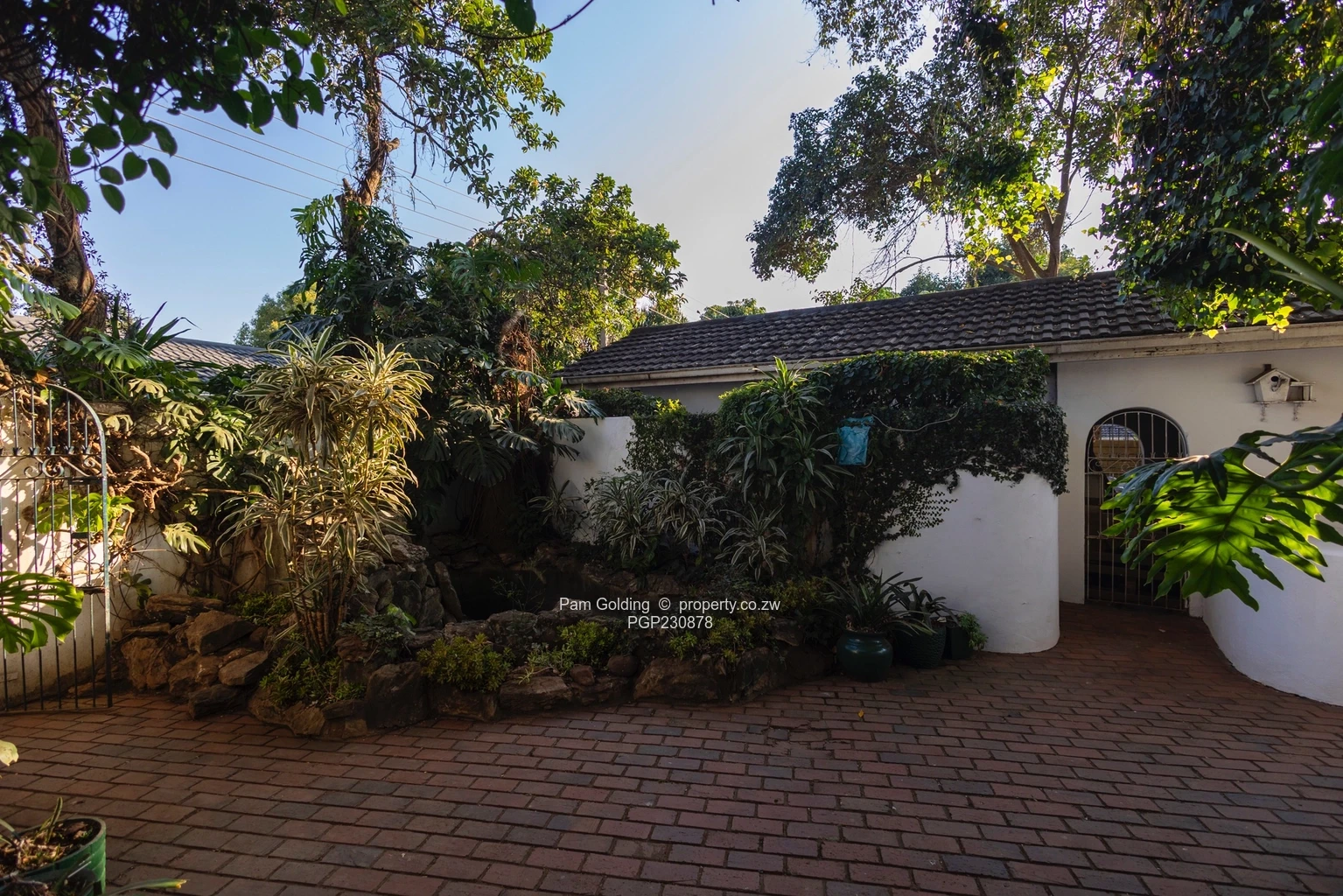 Lovely garden with a soothing water feature, creating a peaceful ambiance. This home offers a comfortable and secure living space, perfect for those seeking a simple yet charming place to call home.
