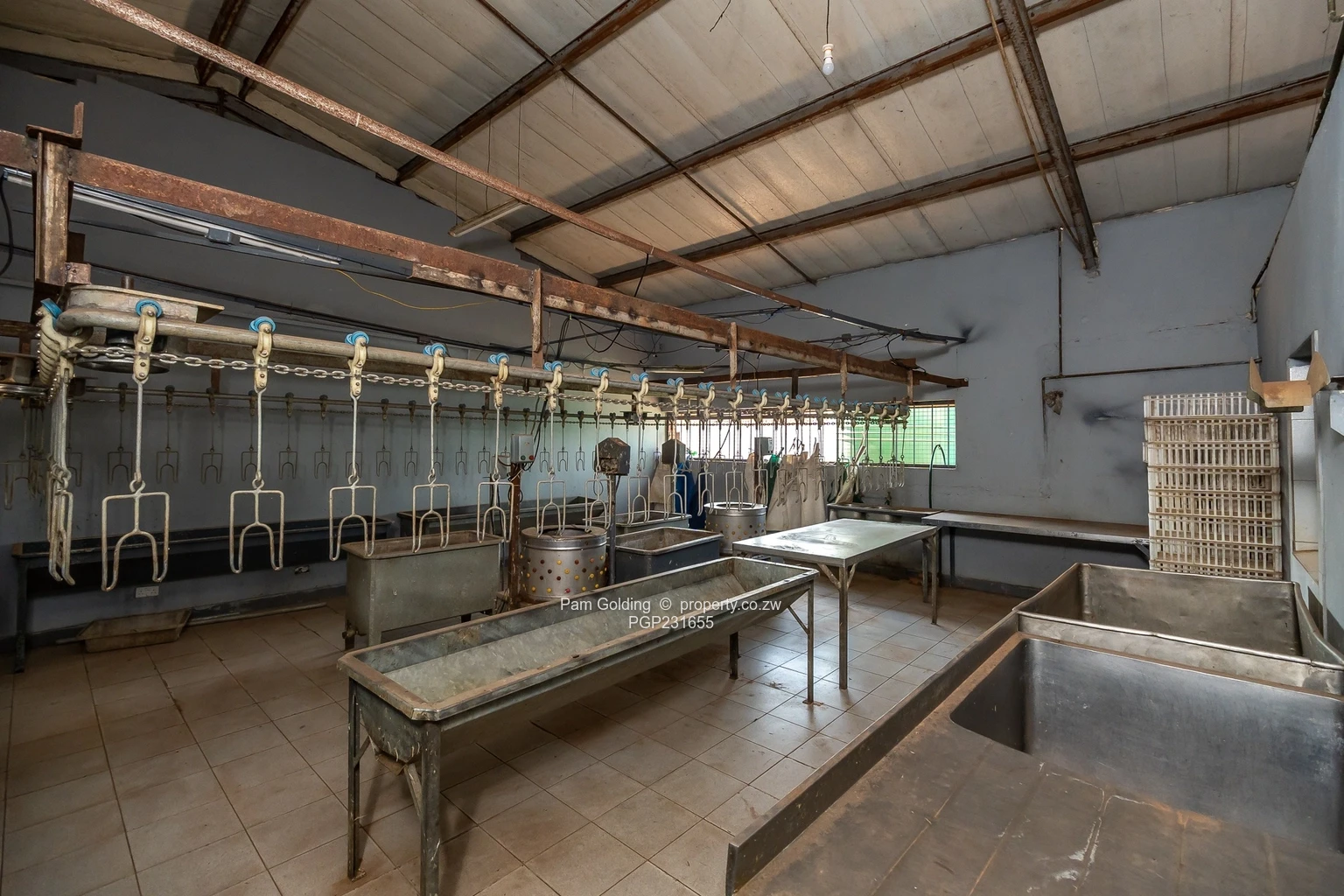 Set on a spacious 1,443 sqm stand, the premises feature a versatile warehouse section—formerly a fully operational chicken processing plant—complemented by five spacious offices, a secure storeroom, and maintained ablution facilities. The flexible layout provides an ideal foundation for a variety of business operations.